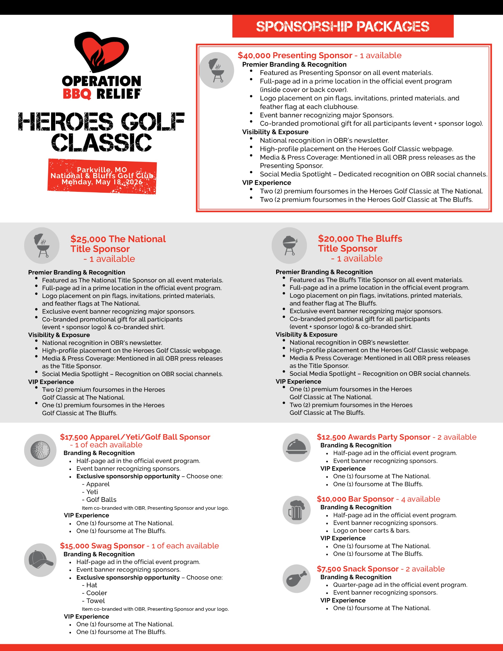 Join Operation BBQ Relief (OBR) for our annual Heroes Golf Classic, where every swing supports the real champions—our nation’s heroes. You’ll tee off on one of Kansas City’s finest courses, enjoy award-winning BBQ from top pitmasters, and sip perfectly paired drinks along the way.